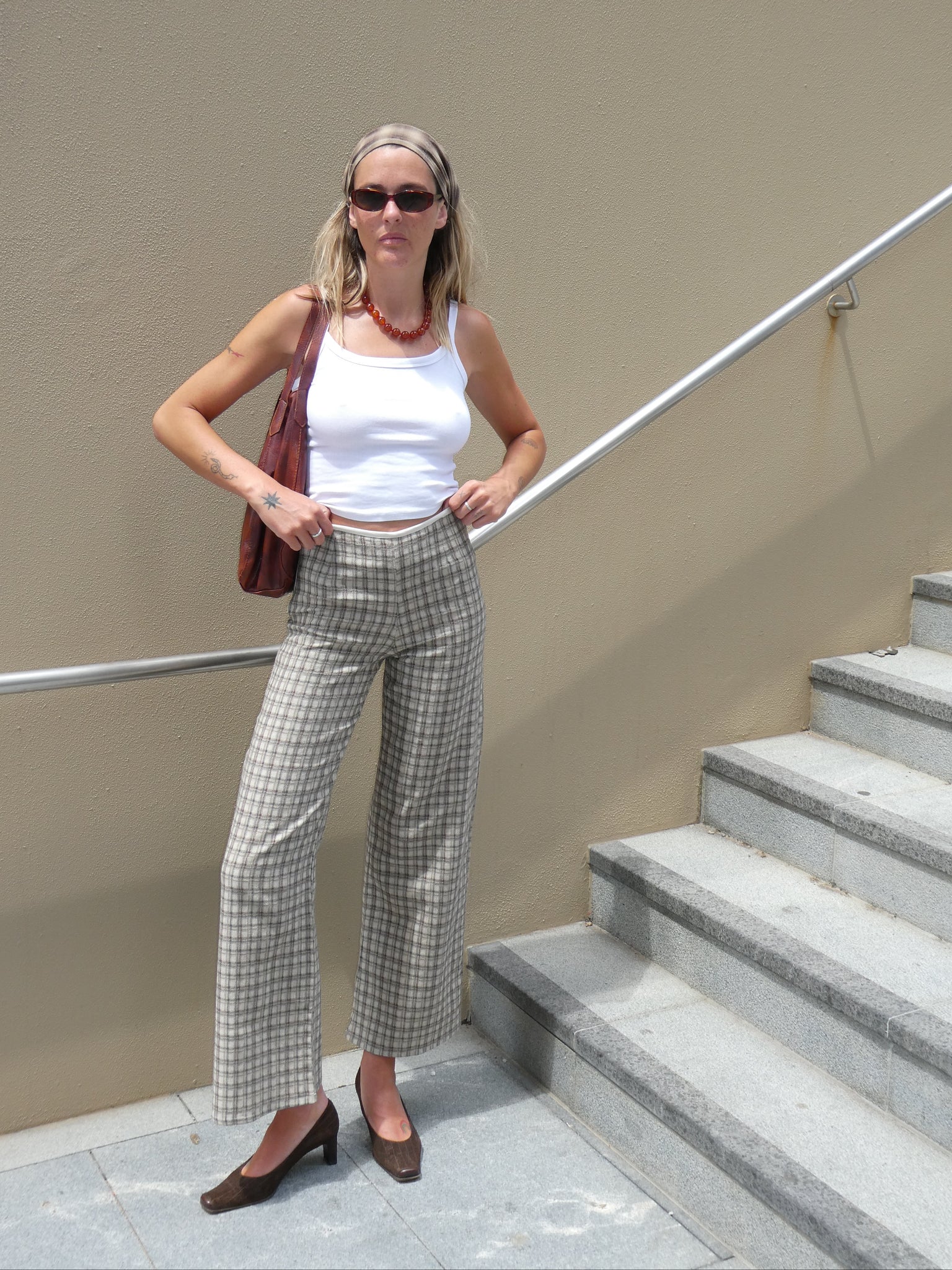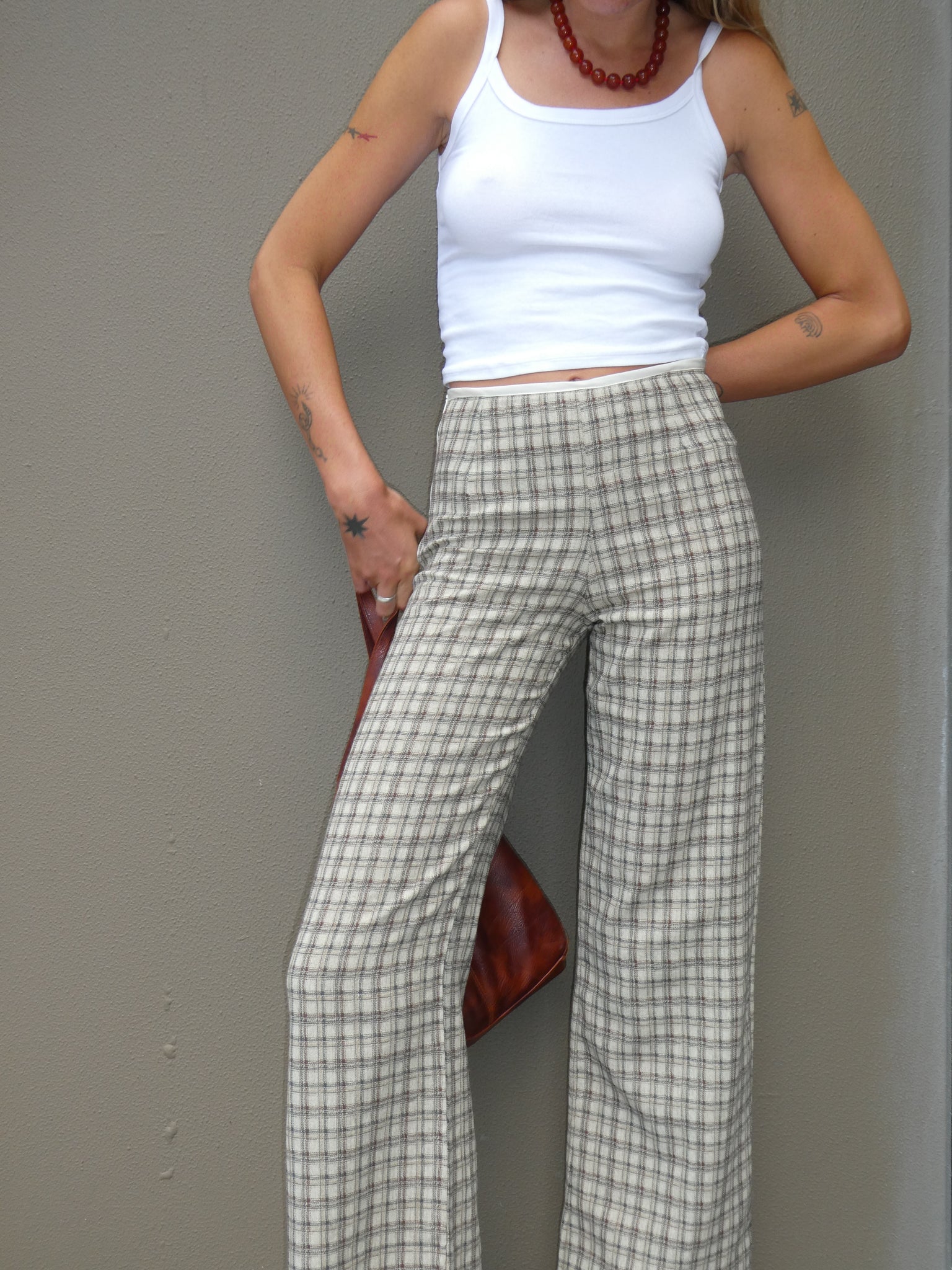 The KIKO pant in Cream check, Size S, READY TO SHIP